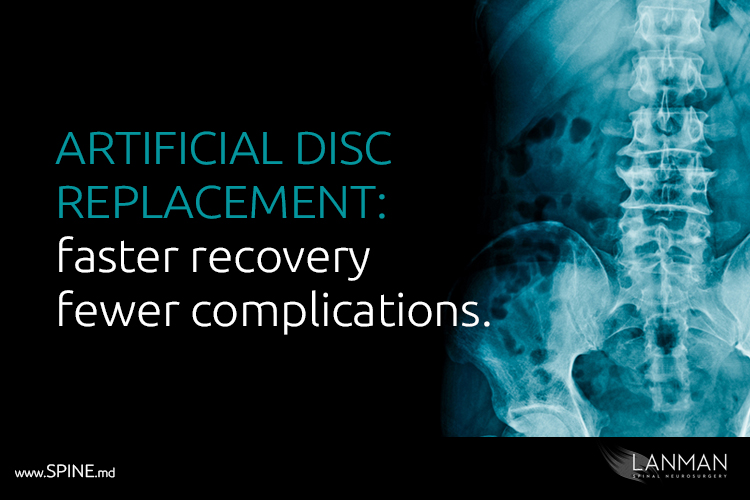 Artificial disc replacement surgery does what the name suggests: we replace spinal discs that have been herniated or ruptured with an artificial one.