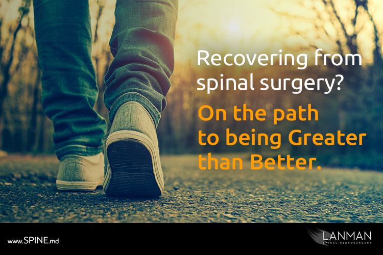 I congratulate you on reading this article because it means you’re taking your post-operative recovery from spinal surgery seriously. In my experience, patients who end up with the best outcomes are often the ones who spend a great deal of time understanding every step of their treatment. I encourage patients to read and learn about the personal effort that’s needed to strengthen the therapeutic value of the procedure.
