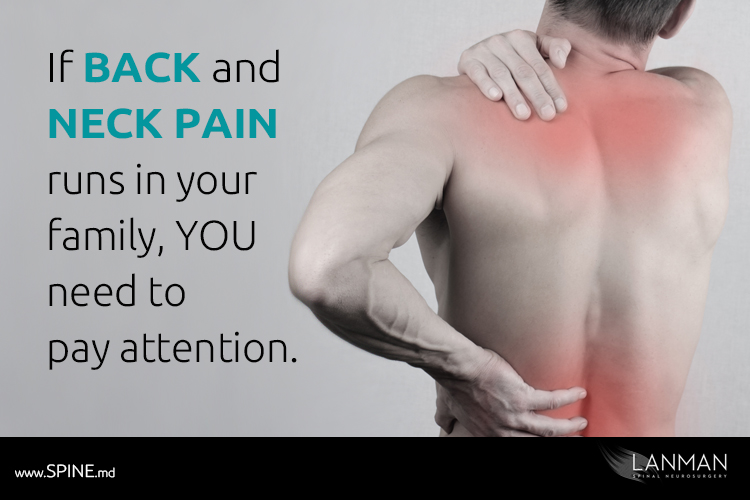 Don’t get me wrong. Degenerative disc disease is so commonplace that, in my opinion, it defies genetics. However, there is data that demonstrates that we could be born with a predisposition for certain types of symptomatic spinal disorders (like disc degeneration that leads to herniation). What the data in a study conducted in 2011 (and others going back to 2008), if we have certain spine disorders, more than likely someone in our family also had the same problem.